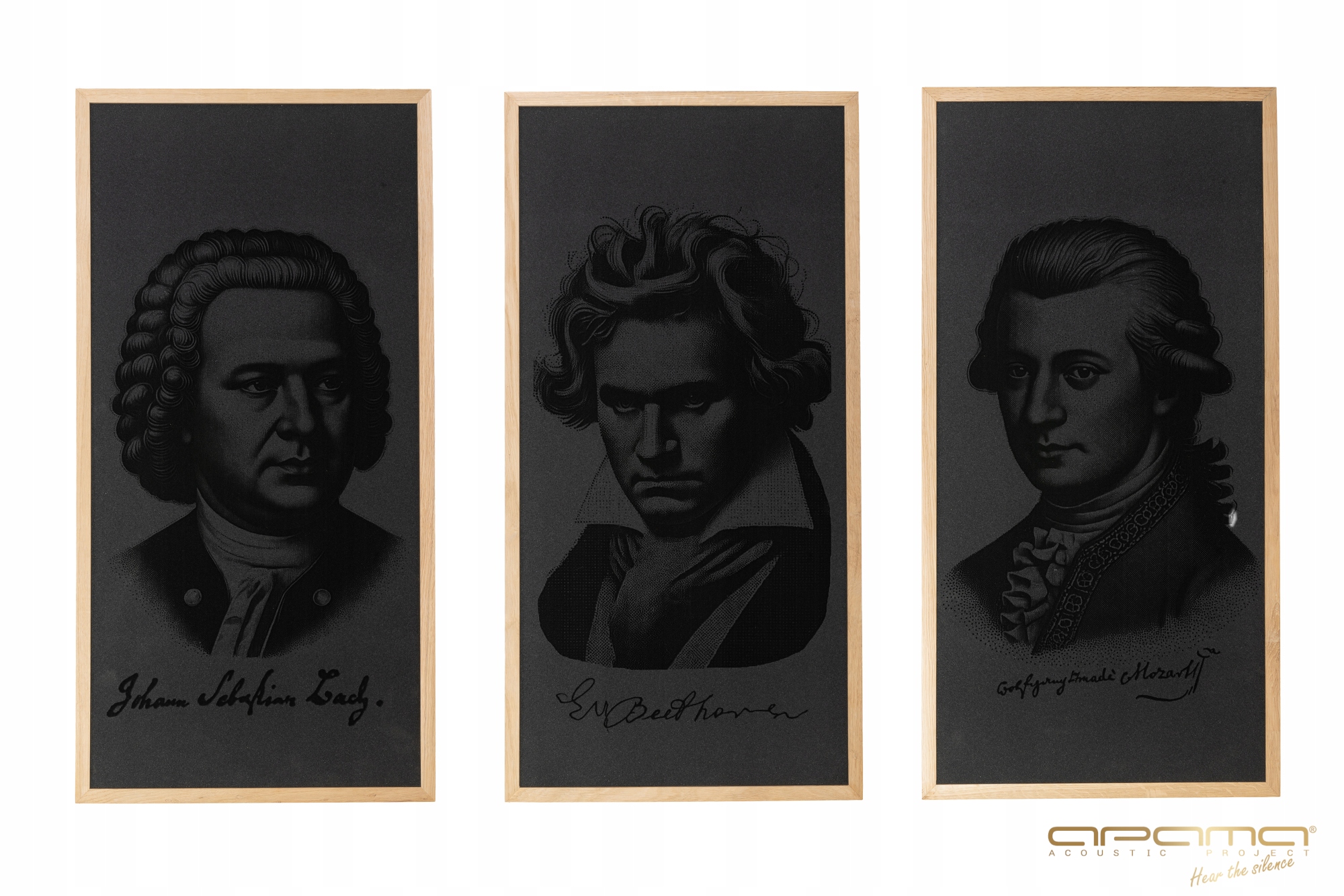 Ми пропонуємо вам унікальний набір екранів акустичної звукоізоляції із зображеннями знаменитих композиторів Вольфганга Амадея Моцарта, Яна Себастьяна Баха та Людвіга Ван Бетховена . Технологія створення зображень означає, що навіть найменші деталі обличчя видно на панелі. Панелі закриті в красиві дубові рами. /p>