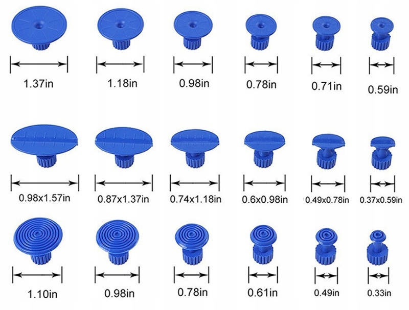 1) на пошкодженій поверхні застосувати градіон , щоб підготувати його до ремонту. Виберіть правильну наконечник , адаптуючи його до розміру вм'ятини. Також переконайтеся, що нога зняття розміщена на зручній відстані. Використовуючи ручку, обережно витягуйте вм'ятину за допомогою зняття. Переконайтесь, що у вас є адекватний клей для використання в наборі, оскільки відсутність клею може запобігти ремонту