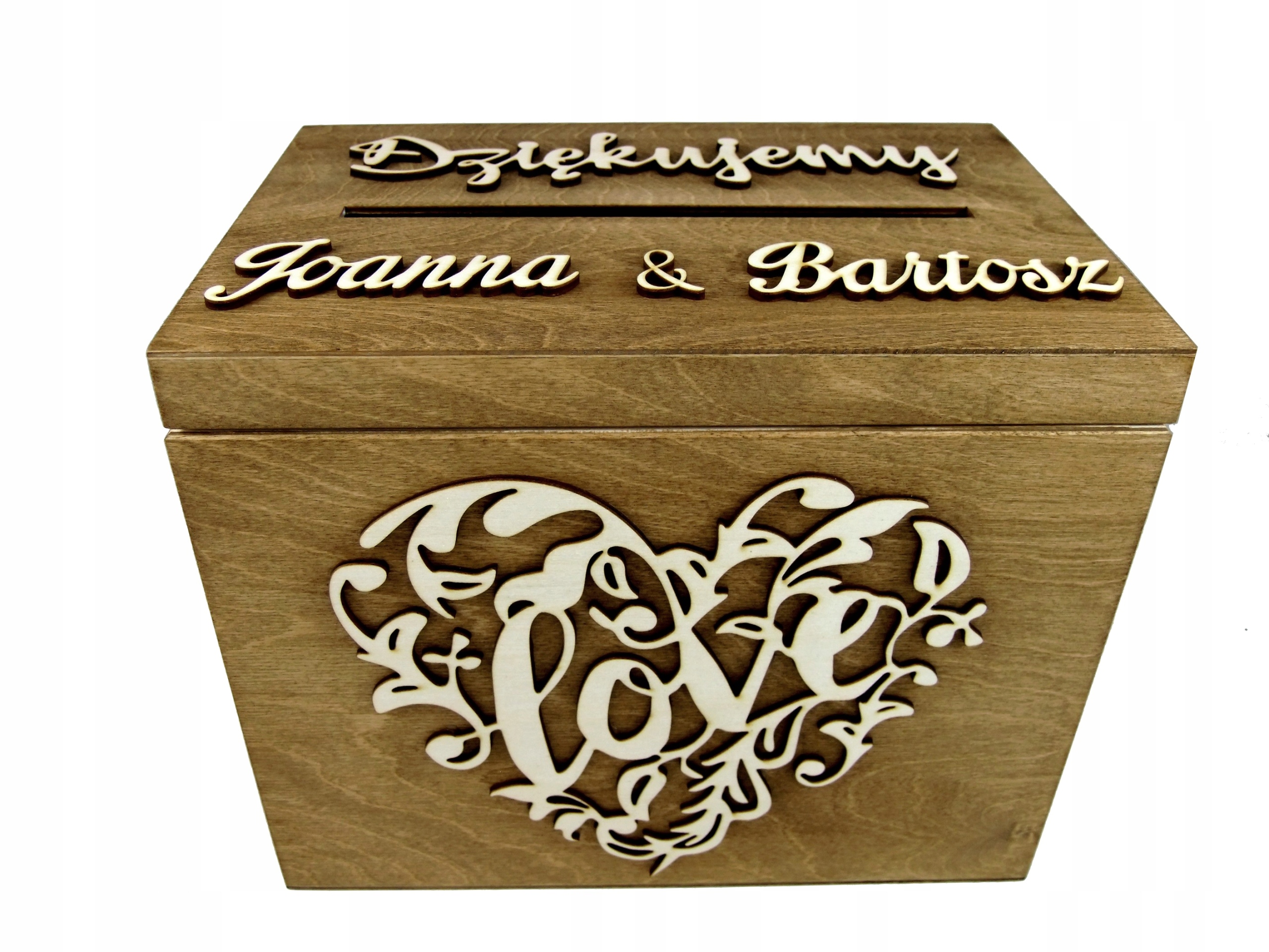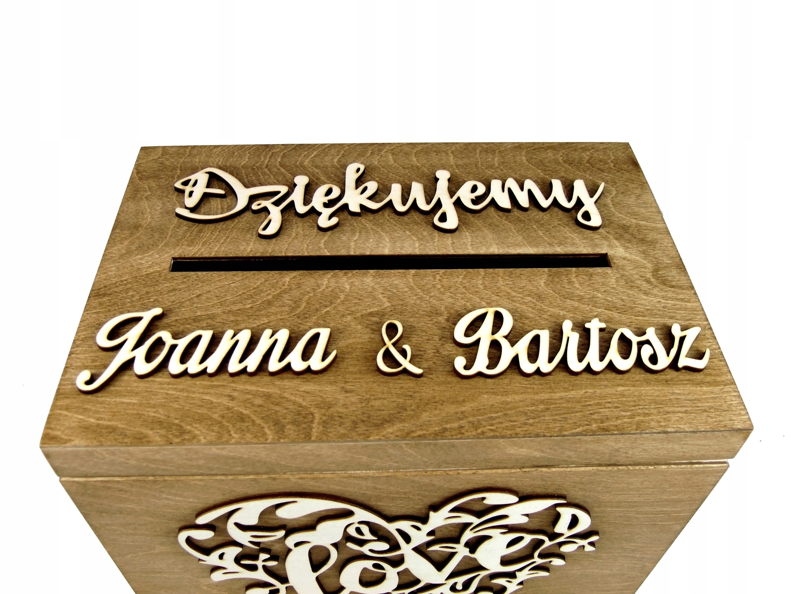 Вгорі лист подяки та імена нареченого і нареченої, спереду коробки графіка на ваш вибір