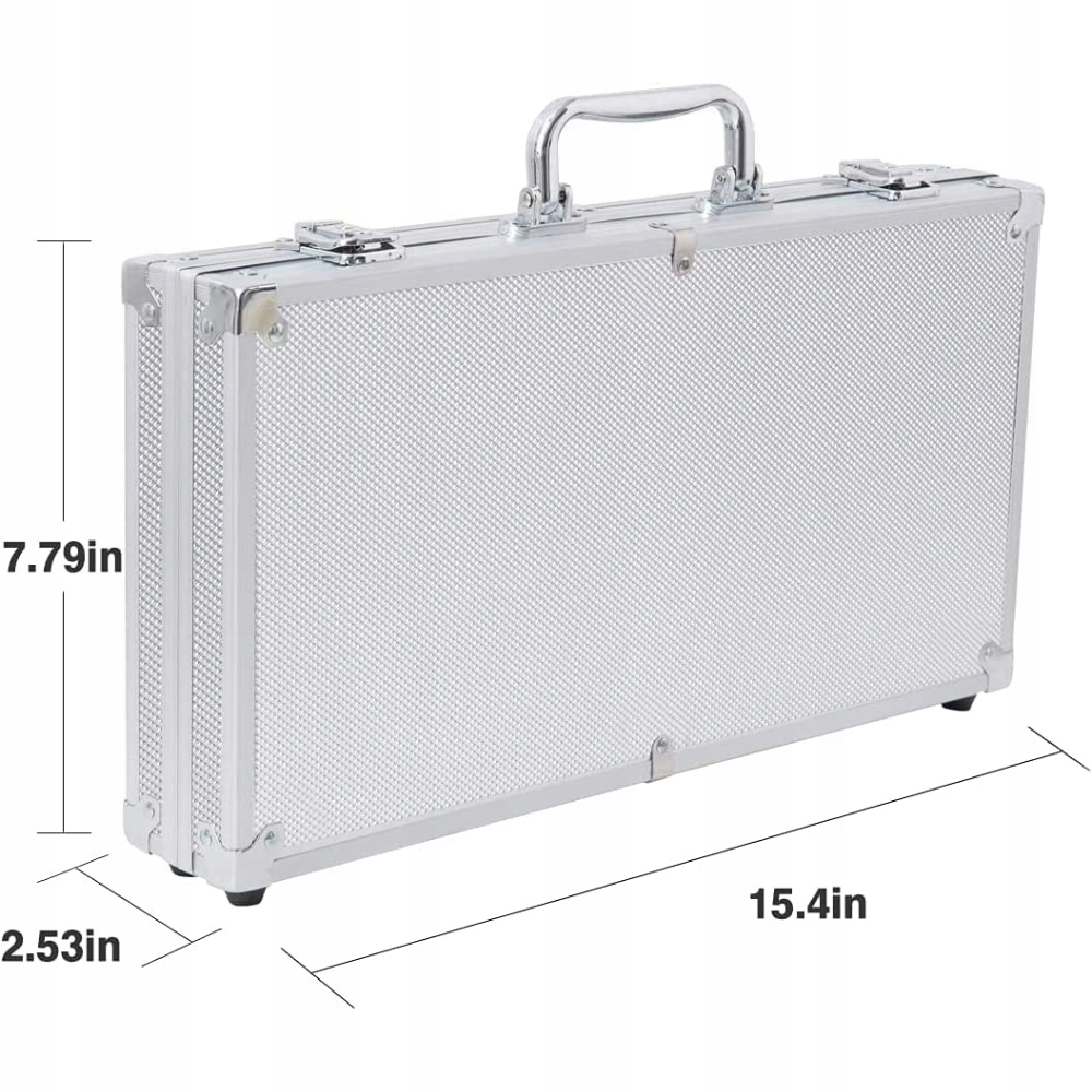Набір упакований в елегантну валізу, закриту ключем, він має два кріплення кліпу, завдяки якому не потрібно щоразу закривати його. Ергономічна ручка валізи дозволяє легко переміщувати набір. Всередині є спеціальні картки, кубики та жетони. З іншого боку, була розміщена губка, яка стабілізує інтер’єр під час транспортування, завдяки якому все завжди в потрібному місці.