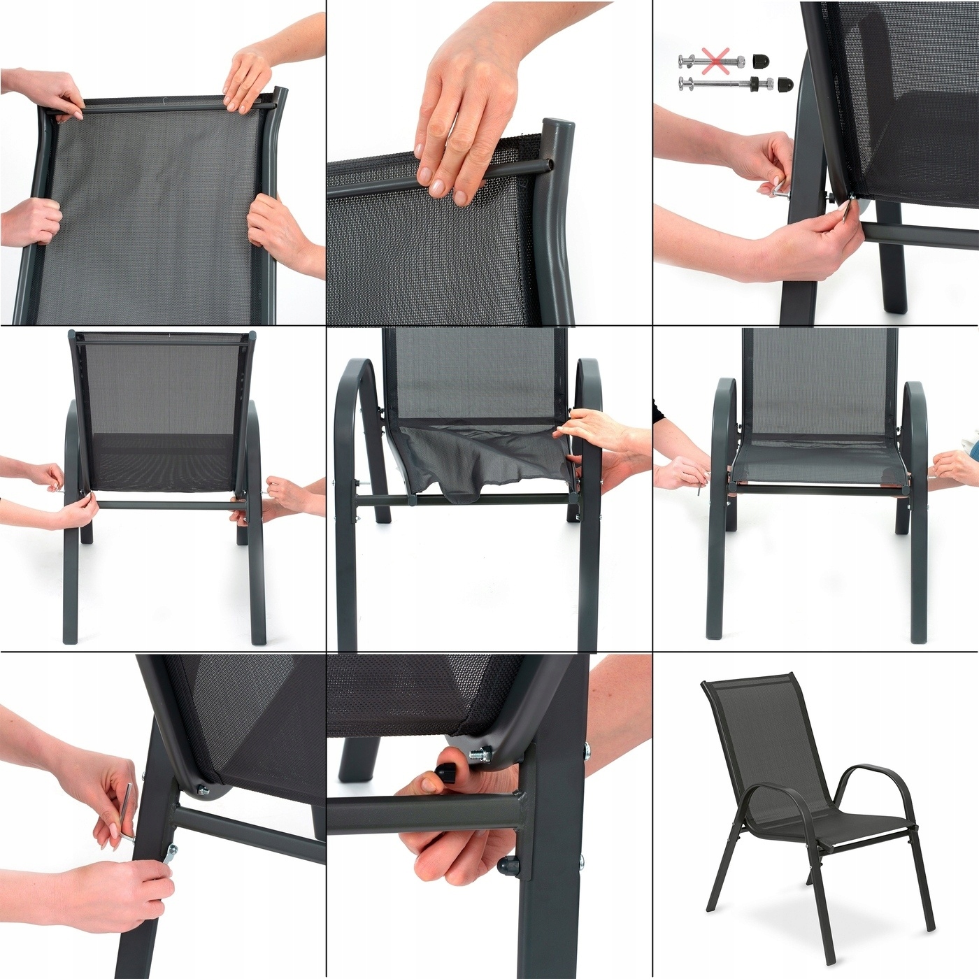 - Інша інформація: - Сталева рама, Порошок, пофарбований у порошок - Сидіння - Текстиль (Поліестер+Пвк), Висота до сидіння: 42 см, - максимум навантаження: 120 кг, максимум навантаження: 120 КМ, - максимум навантаження, 120 кг Self -Assembly, - Інструкції та ключ до встановлення в наборі,