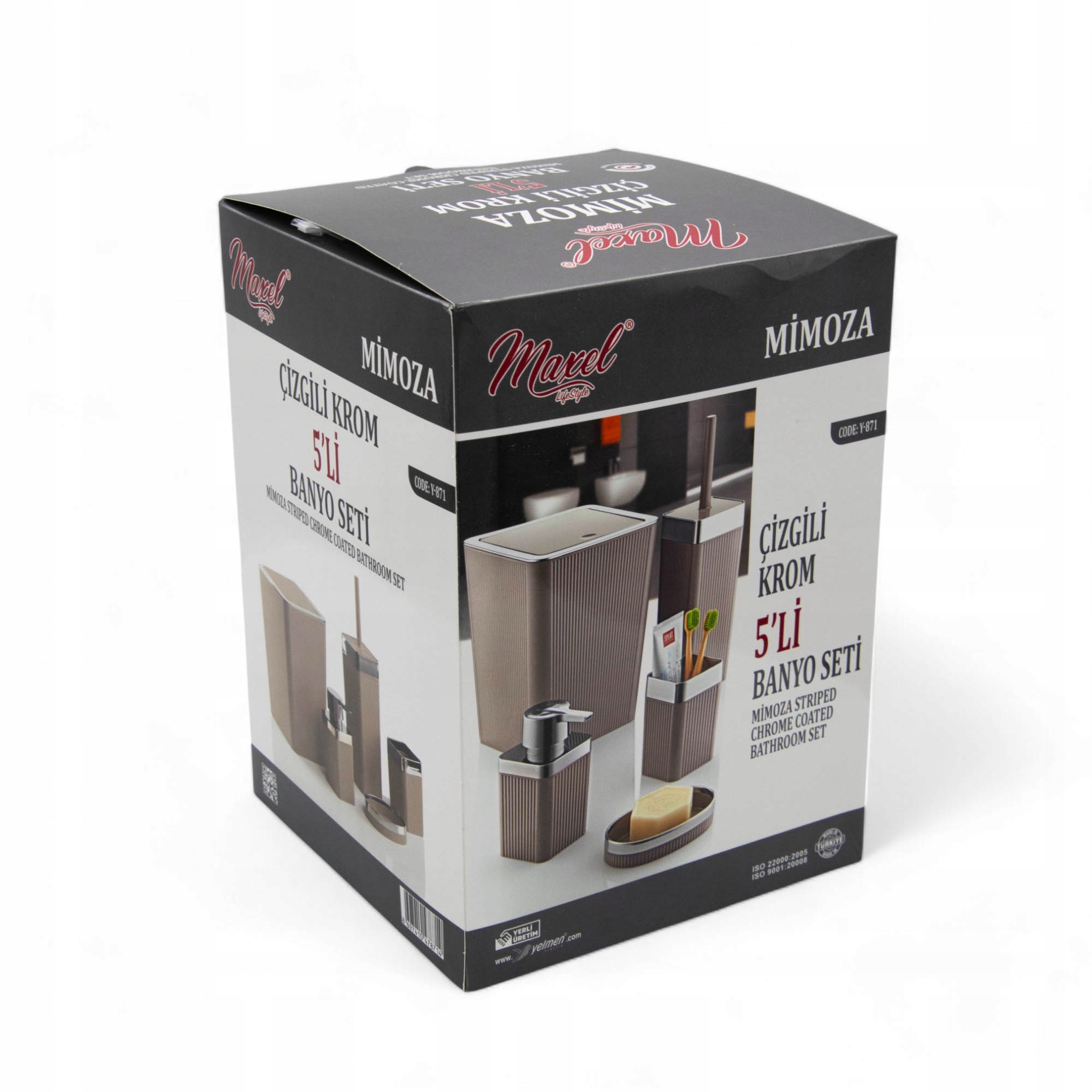 Кожен елемент набору виготовлений з міцного, легко зберегти чистий сірий пластик, прикрашений делікатними хромованими акцентами. Це практичне та естетичне рішення , яке введе гармонію та порядок у вашій ванній кімнаті.