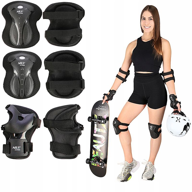 H734 NILS Extreme - це набір зап'ястя, ліктів та колін . Виготовлений з високоякісних матеріалів. Шархаса, розроблена з сильного та легкого пластику, яка максимально захищає зап’ястя, лікті та коліна від травм. Всі захисники оснащені липучковим застібком, завдяки якому вони тримають захисників у потрібному місці .