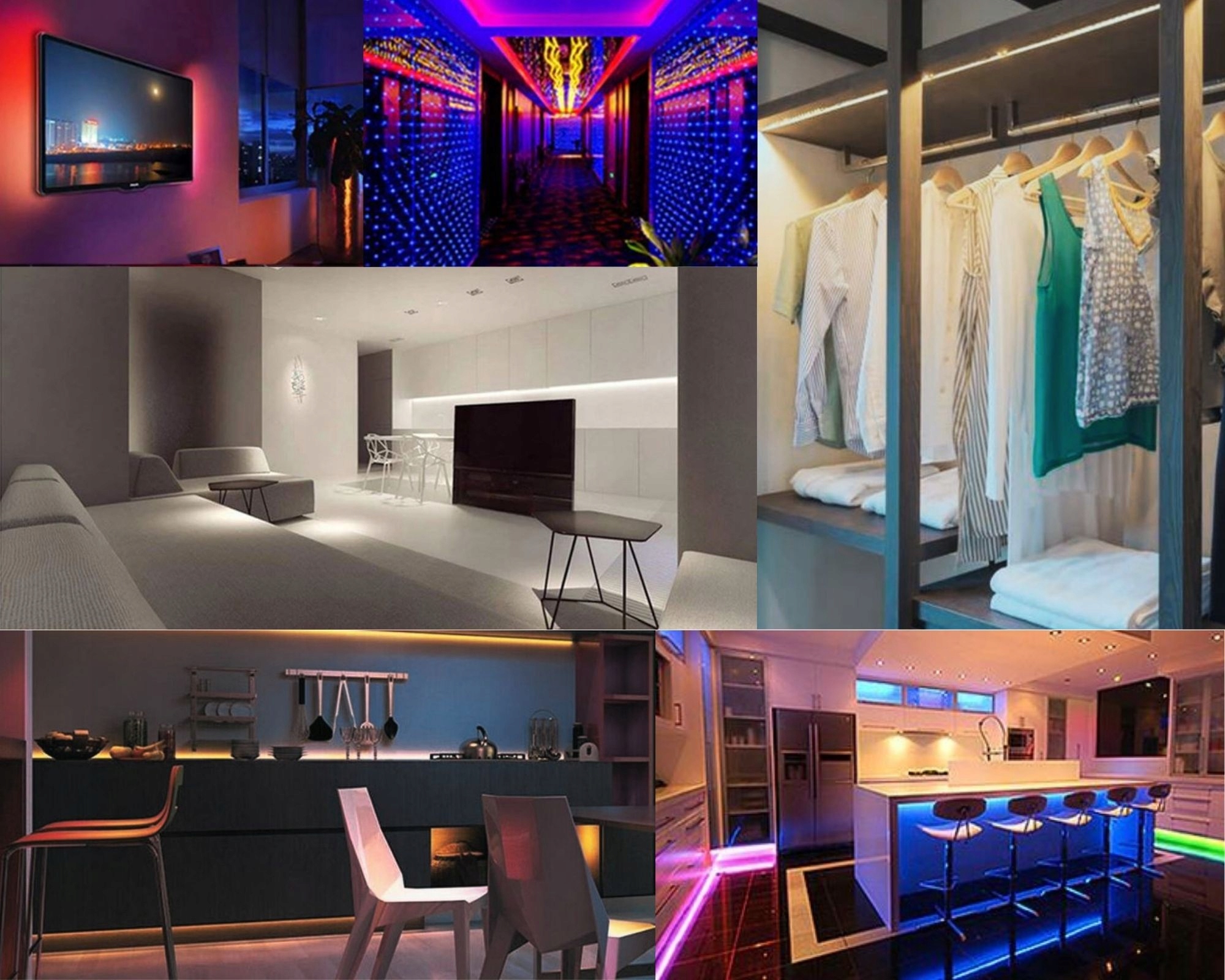RGB+світлодіодні стрічки в 4in1 працюватимуть там, де ми хочемо отримати барвисті світлові ефекти і зможемо встановити колір природного світла з окремої мікросхеми, а не лише як суміш світла RGB. Через те, що це гнучка дозволяє нам отримати необмежені можливості з точки зору домовленості. Завдяки своїй функціональності він відіграє як декоративну, так і освітлювальну роль в одній. його широке застосування є ідеальним освітленням для підвісних стелей, меблів, полиць або дзеркал або сходів. Ми також можемо використовувати його для прикраси вікон та магазинів, тому він буде ідеальним як комерційне освітлення. також ідеально підходить для виділення телевізора, комп'ютера (настройки), стіл або дитячої кімнати.