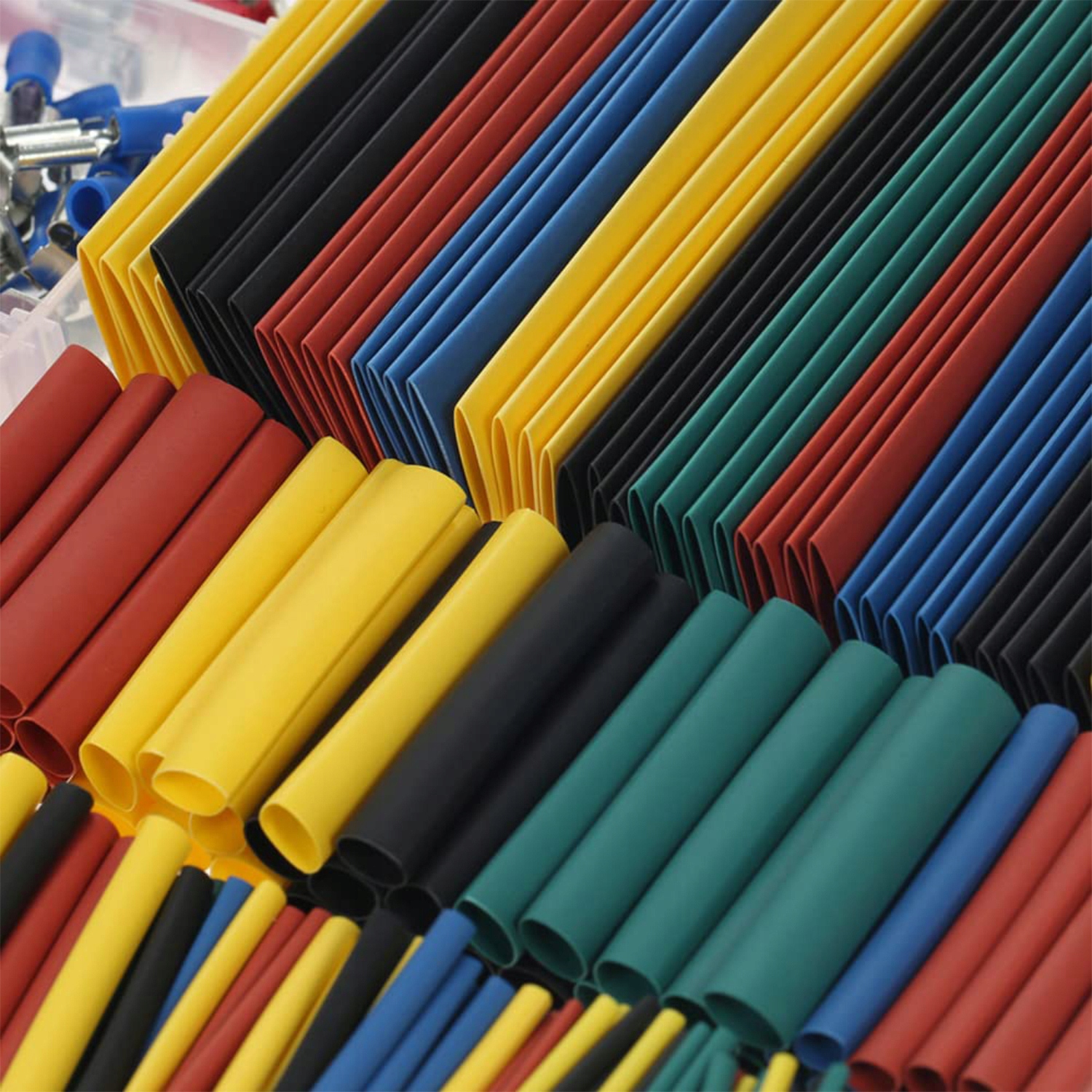 Термокурпліальні трубки Введені в набір є гнучкими, що полегшує їх встановлення на проводах. Після скорочення вони утворюють міцне, щільне покриття, яке додатково захищає від вологи, зовнішніх факторів та механічних пошкоджень. Завдяки цьому, зв’язки є більш міцними та стійкішими до корозії. Трубки також працюватимуть у програмах моделювання, де потрібні менші діаметри та точні з'єднання. 4 Конектори та трубки можна використовувати без страху як у транспортних засобах, так і в домашніх установах.