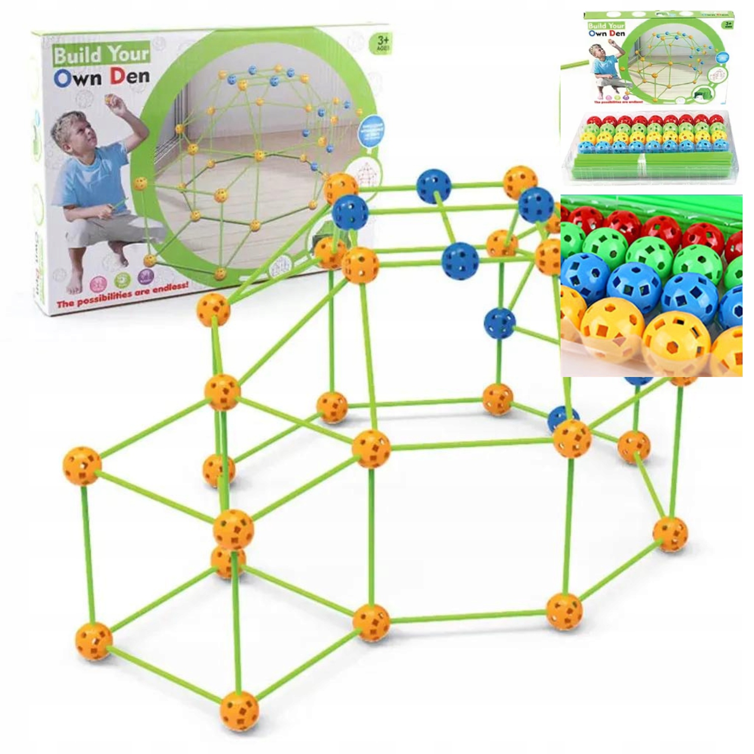 Якщо в дитинстві ви завжди хотіли побудувати хмарочос, ракетку або піраміду, тепер ви можете! Fortkid - це унікальний будівельний набір, який надає вашим дітям можливість побудувати що -небудь з нуля. Завдяки універсальній смужці у вигляді балків і кульок як з'єднувальних елементів, ви можете побудувати все, незалежно від того, чи є вони витонченими фортецями, печерами, грами наметів, ракет, будинків, іглу, замків принцеси, тунелів чи будь -чого іншого, що приходить до вашого розум. Вони побудуватимуть власний простір для розваги, що дійсно подарує їм задоволення!
