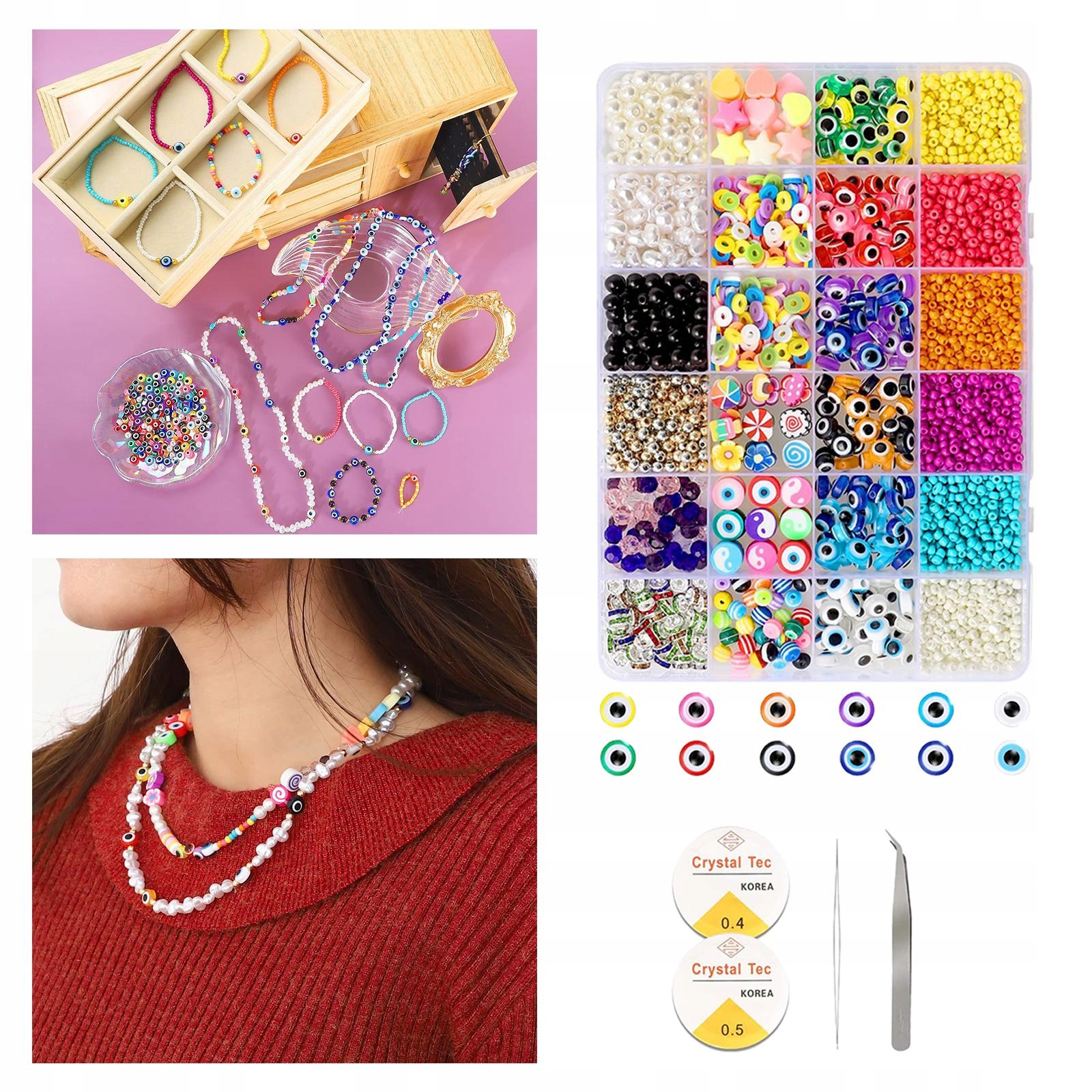 Виготовлення сережок та намиста: набір для самостійних браслетів та бісеру, що складається з оком, що містить різні візерунки очей та різні інструменти для ремесел. Ці намистини можна поєднувати з намистинами інших стилів, щоб створити дивовижні подарунки ручної роботи. Для побиття, нанизування намистин, вишивки, шиття та інших ремесел. Для самостійних браслетів, кольє, суконь для суконь, ювелірних аксесуарів, подарунків, одягу, взуття, окулярів і не тільки. Організовані намистини.