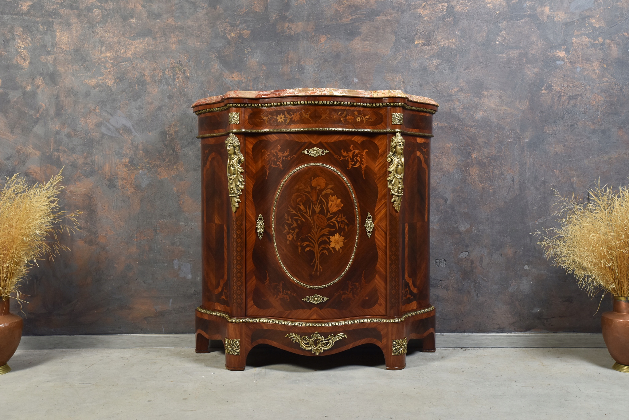 Комод має оригінальну латунь прикраси та гарний мармуровий стіл.