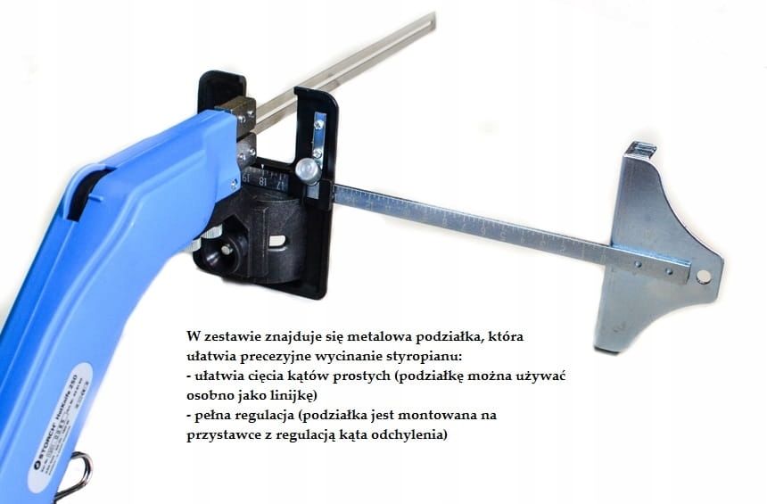 - Багатий набір аксесуарів, у наборі з регульованим штампом профілів [для різання боні в пінопластованому полістиролі, канали для опалення підлоги, канали в полістиролі для установ]