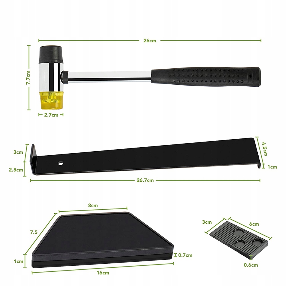 - Високоякісні полюсні інструменти: При встановленні дерев’яних або ламінованих підлог важливо використовувати тверду сталеву смугу. Наші високоякісні сталеві рульові стрижні не згинаються і не тріщаються під час складання. 4 Наші різьблені блоки з цими ламінованими інструментами для підлоги виготовлені з густої гуми, щоб запобігти пошкодженню ламінованих та дерев’яних підлог.