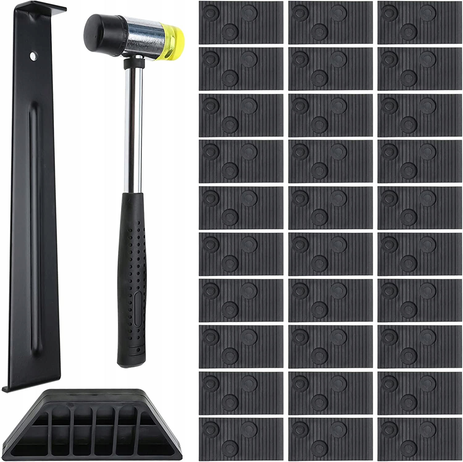 - Повний комплект для монтажу підлоги: Якщо ви готуєте встановити нову підлогу з твердого дерева або ламінату, цей чудовий набір включає гумовий гумовий блок, рульова панель, 30 підлоги та подвійну гумову молоток. Двомідний молоток: Наш двоглопний молоток містить гумову головку та тверду пластикову головку, що забезпечує відмінну продуктивність. Цей молоток полегшує управління використовуваною силою.