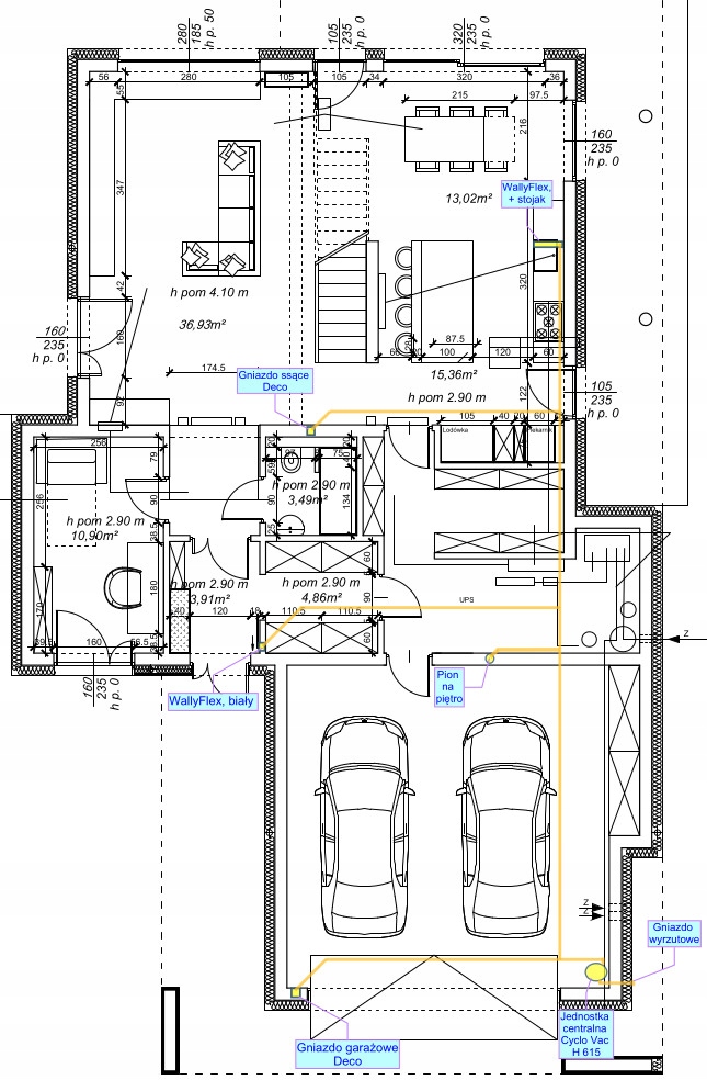 - Distribution of suction points in terms of the solutions used (traditional suction sockets, automatic drawers, Wallyflex, etc.),