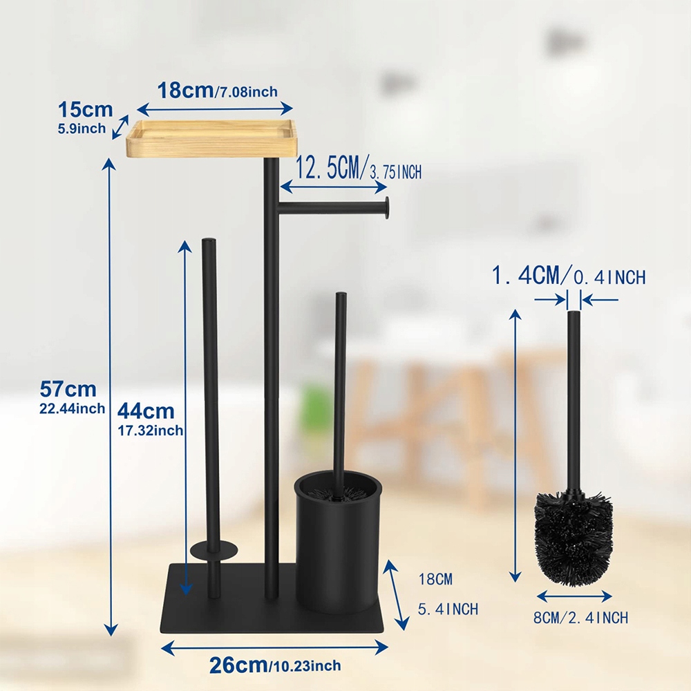 Власник туалетного паперу з туалетною щіткою з нержавіючої сталі виготовлений з міцної нержавіючої сталі та бамбукової сталі, завдяки якому ваша ванна кімната матиме високоякісний вигляд.