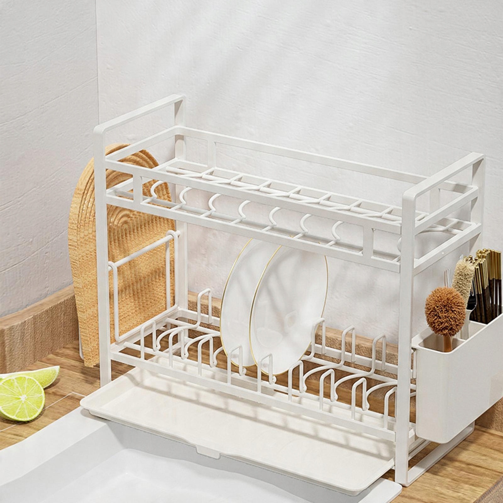 [Практичний дизайн] Ця сушарка для посуду оснащена кухонним тримачем посуду, тримачем дошки для рубання та кухонними каструлями; Лоток для води збирає зайву воду, завдяки якому верхній рівень полиці на посуді не капає водою з нижнього шару. У кухні декору, незалежно від того, це сучасна чи традиційна кухня, він не буде виглядати поза місцем. Кухня для дому, ресторани, домашній будинок, для організації тарілок, страв та мисок, і навіть як невелика сушарка для страв на стільниці.