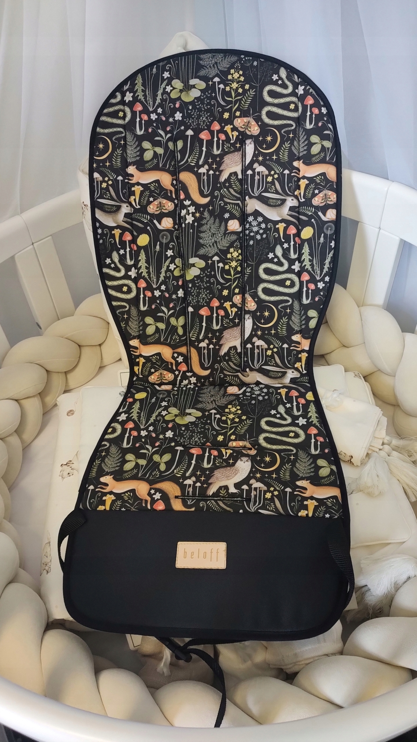 Вставка не нагріває, не потіє спини вашої дитини, начинка становить лише 1 см піни, тоді як сама вставка еластична і тверда. Подушка, захисники ременів, ковдра.
