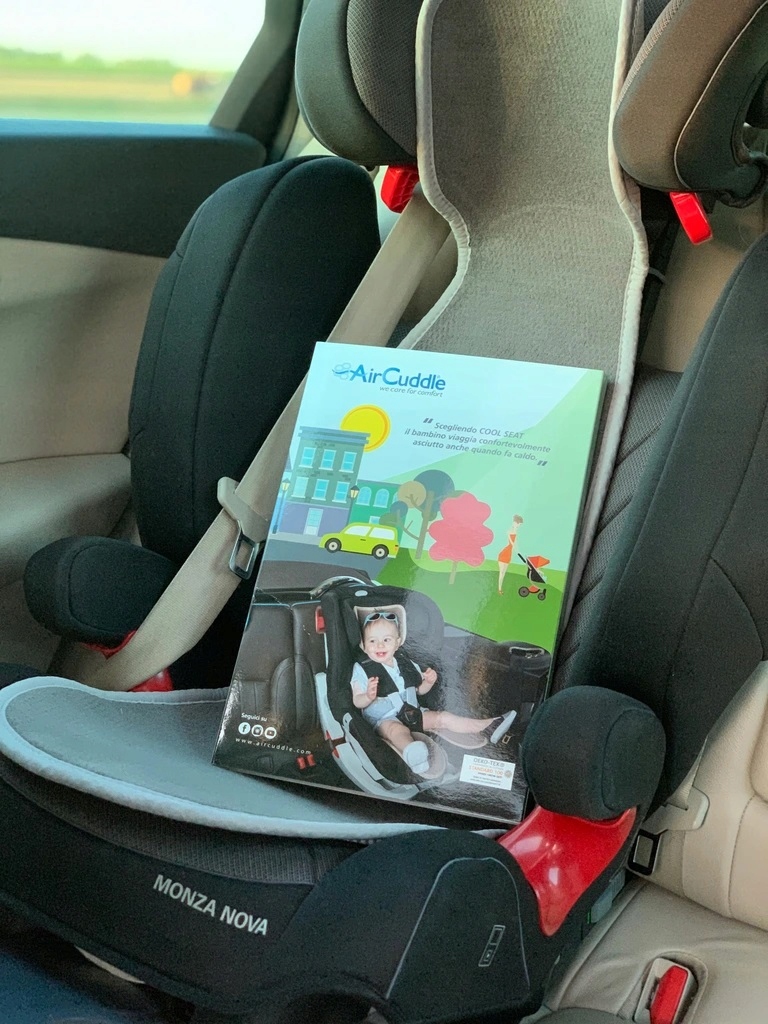 Завдяки AirCuddle ваша дитина комфортно подорожуватиме в кріслі категорії 15-36 кг без мокрої спини, одягу чи волосся.