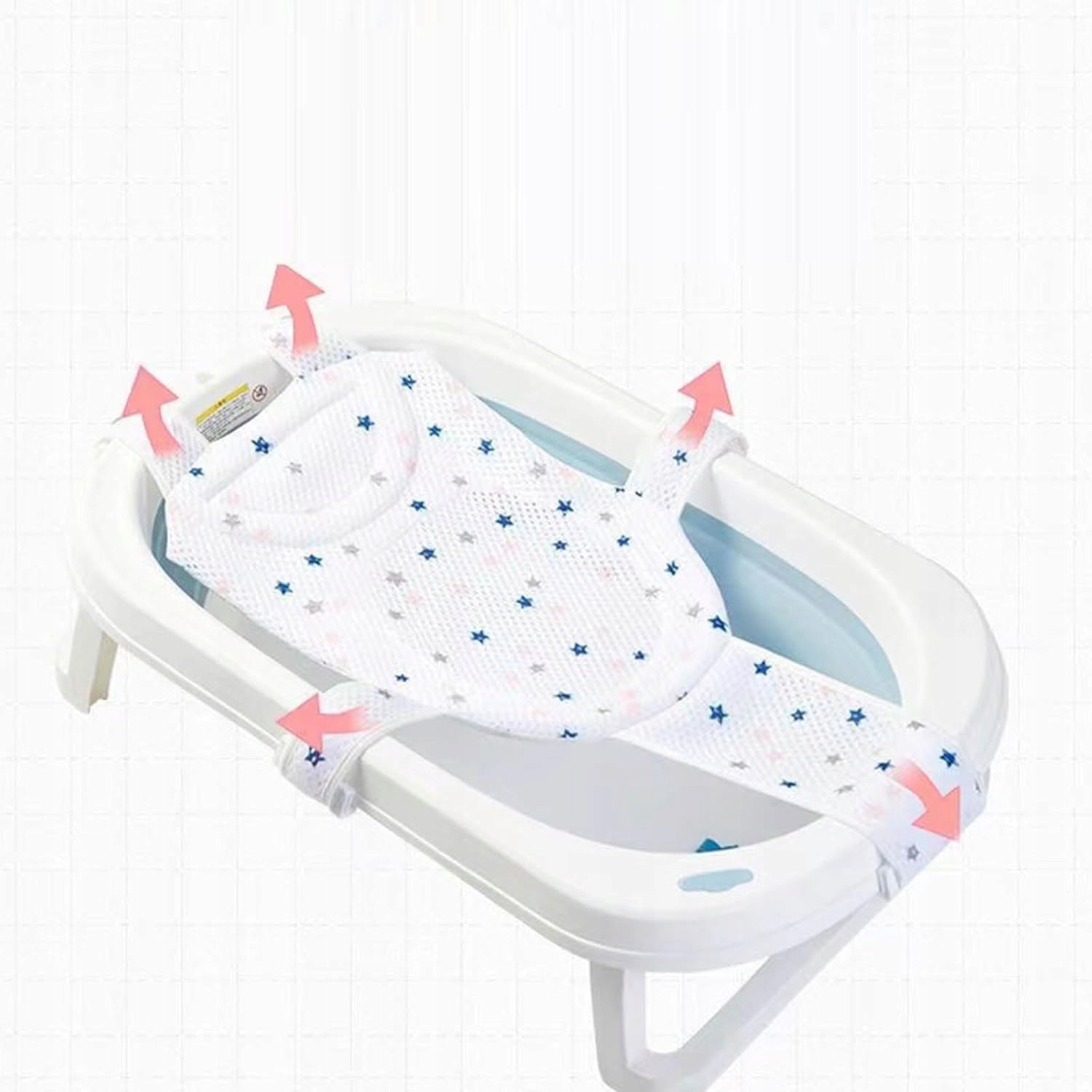 - Ця дитяча сітка для купання регулюється відповідно до більшості ванн і може бути легко відрегульована відповідно до ванн різних розмірів. Комфортно підтримує голову і шию дитини.