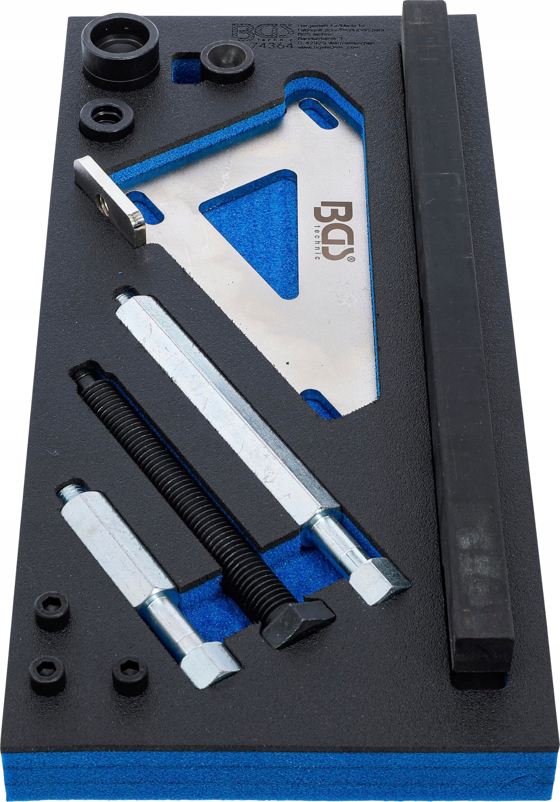 Вставка 1/3 ящика від BGS, модель 74364, є спеціалізованим інструментом, призначеним для роз'єднання половин корпусу коробки передач в автомобілях, обладнаних 7-ступінчастою коробкою передач DSG, маркування 0AM, групи VAG. Інструмент розроблений для точної та безпечної роботи при обслуговуванні коробок передач, зводячи до мінімуму ризик пошкодження корпусу під час демонтажу. Вставка сумісна з системами зберігання інструментів, такими як 1/3 ящика, що полегшує організацію робочого місця та забезпечує швидкий доступ під час ремонту.
