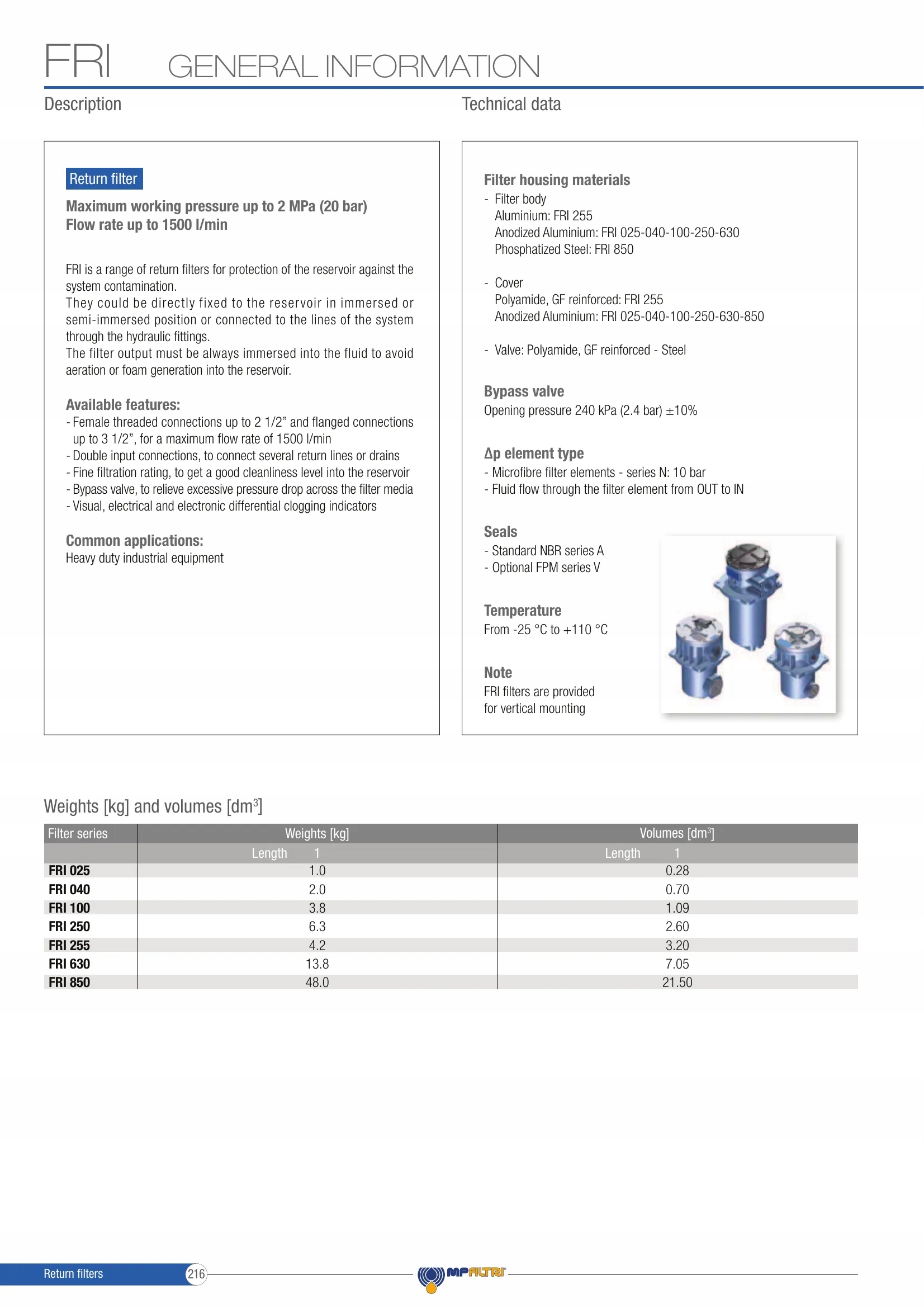 - ГІДРАВЛІЧНИЙ ФІЛЬТР MP FILTRI CU 100A25NP01