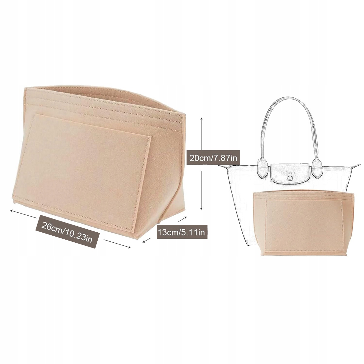 - Спеціально для сумок Longchamp. Середній розмір: 26 (Д) x 13 (Ш) x 20 (В) см. Будь ласка, виміряйте довжину, ширину та висоту всередині сумки за допомогою рулетки.