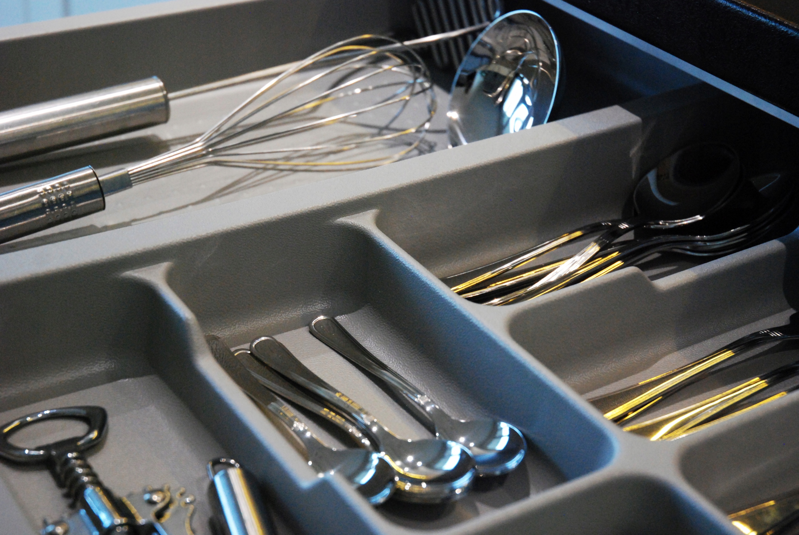 Універсальна висувна вставка для столових приборів може використовуватися в ящиках розміром від 400 до 600 мм