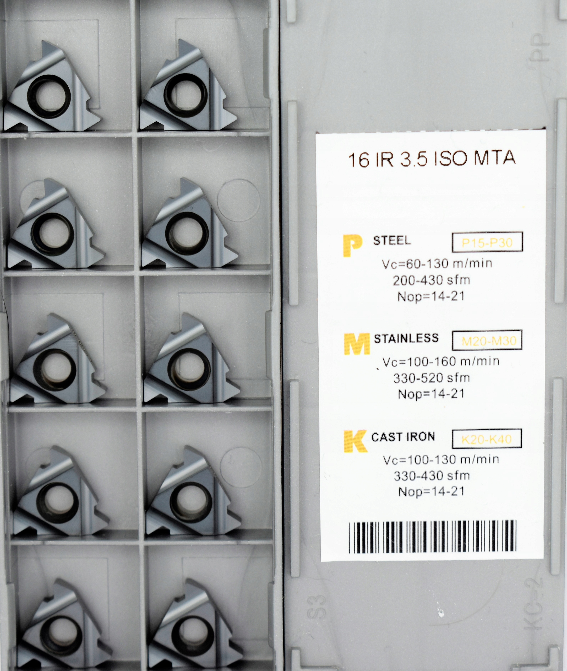 ПРАВА ПЛАСТИНА ДЛЯ МЕТРИКІВ, ВНУТРІШНЯ РІЗЬБА. РОЗМІР ХІДКУ 3,5 ММ 16IR 3,5 ISO ДЛЯ РІЗЬБОВОЇ СТАЛІ, НЕРЖАВІЮЧОЇ СТАЛІ ТА ЧАВУНУ AG15TF