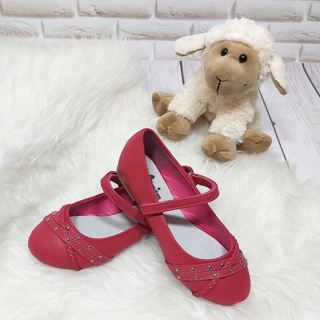 Бальеріни дівчат із зручним кріпленням на липучках, що дозволяє оптимально підходити до ширини стопи дитини і захищає взуття від ковзання з ноги. Декоративні смуги з косою та стразами спереду. Всередині зручної натуральної шкіряної вставки.