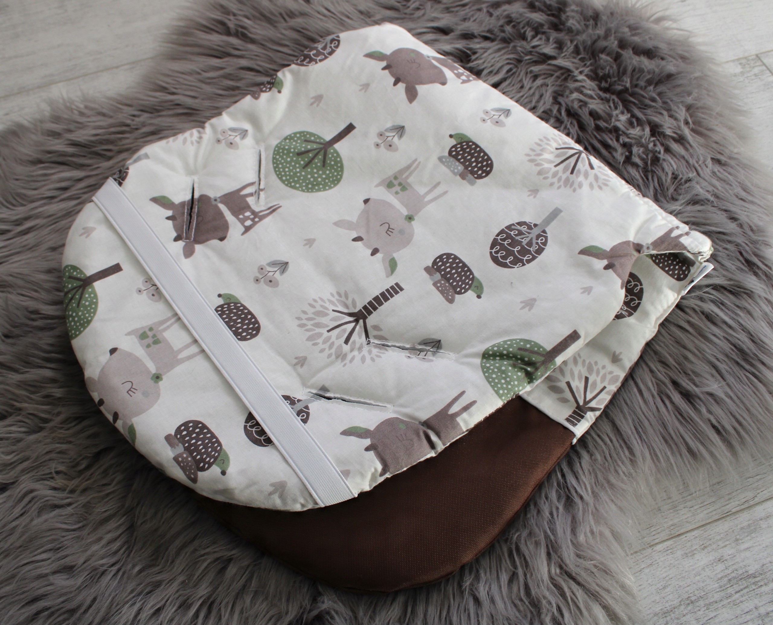 У верхній частині вставка з 100% бавовни (над підніжкою), що робить вставка дихаюча і повітряна, її можна використовувати в будь-який час року, навіть спекотним літом. Дитина в ньому не потіє додатково, як це часто буває зі вставками з норки або інших штучних матеріалів. Вставка має однакові візерунки з обох сторін - її можна перевернути, якщо, наприклад, одна сторона забрудниться.