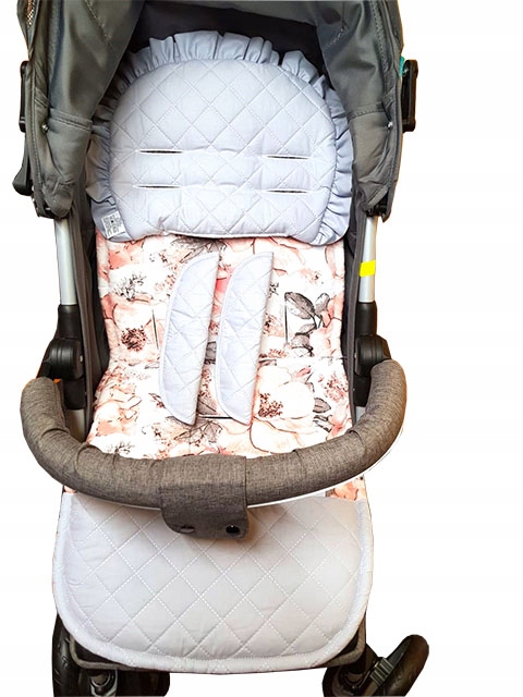 Подушка підтримує голову дитини і амортизує удари під час їзди, як в колясці так і в автокріслі. Подушка має форму напівкруглої форми і оброблена чарівним воланом. Кріпиться до коляски ременями, відстібається.