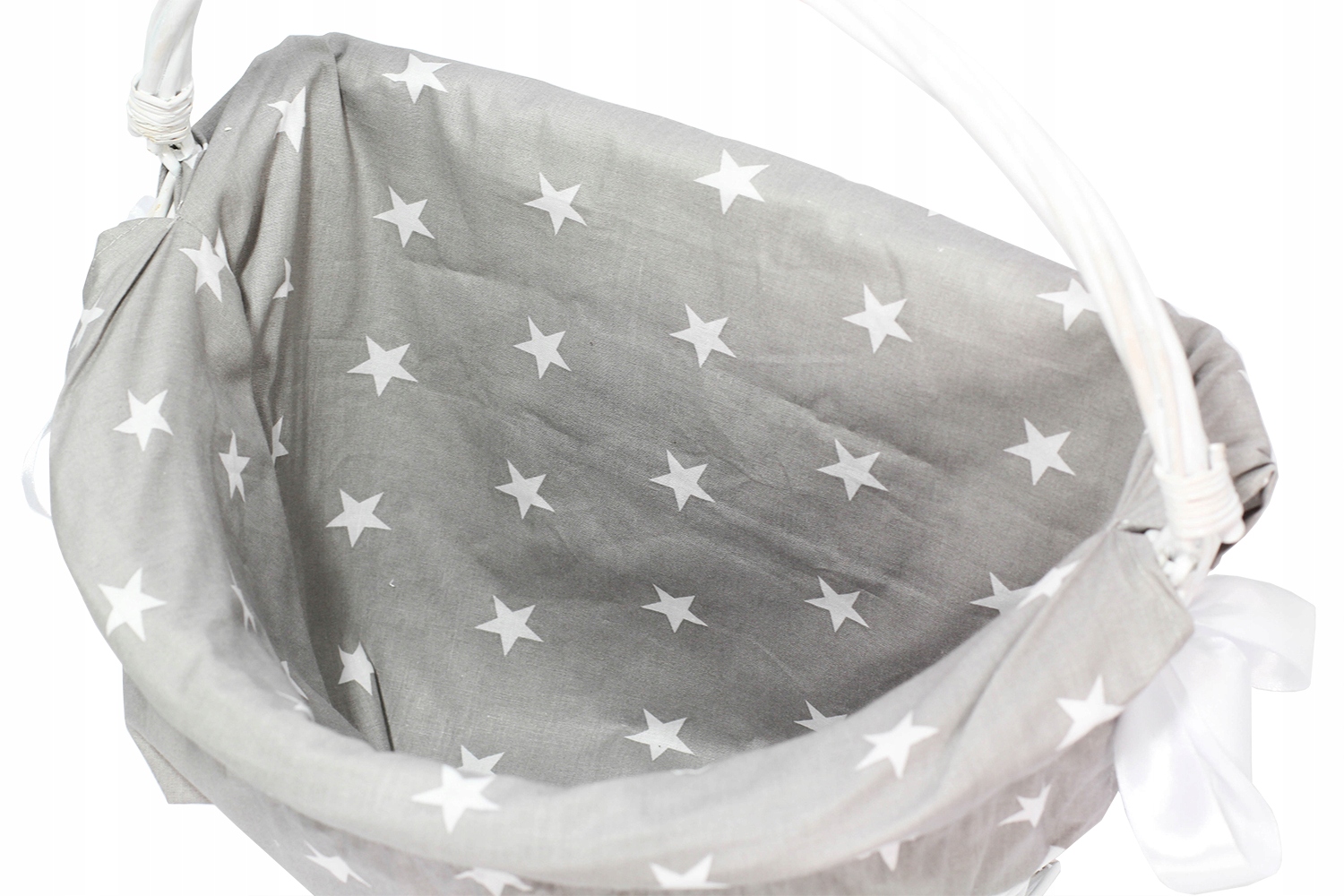 Вставка має гумку, пришита у верхній частині, завдяки якій вона адаптується до кошика, а атласні стрічки додадуть чарівності та стабільності.