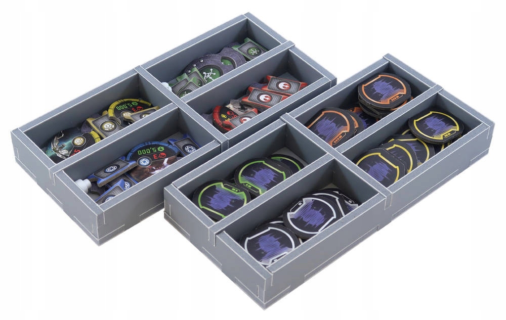 Вставки Folded Space виготовлені із затверділої піни (Evacore), завдяки чому вони захищають компоненти від бруду та подряпин. Це особливо важливо, коли в грі є фігурки або інші елементи декору. У класичних вставках з дерева або пластику такі елементи часто пошкоджуються в результаті «притуплення» об тверду поверхню під час транспортування, але при використанні у вставках піна Evacore вирішує цю проблему. Ще однією незаперечною перевагою є легкість всієї вставки.