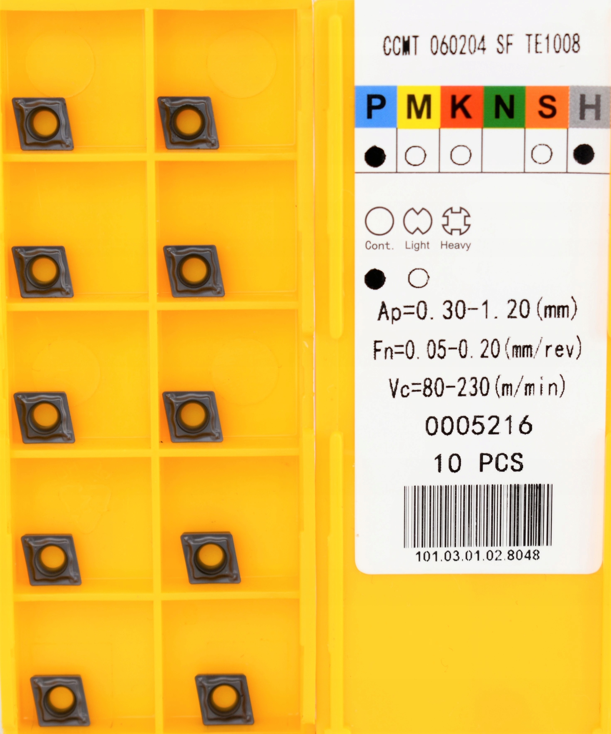 ШЛІФОВАНІ ВСТАВКИ CCMT 060204 SF TE1008 ДЛЯ ТОЧЕРНОЇ ОБРОБКИ СТАЛІ ТА СПЛАВІВ ВИСОКОГО ЗАГАРТУВАННЯ