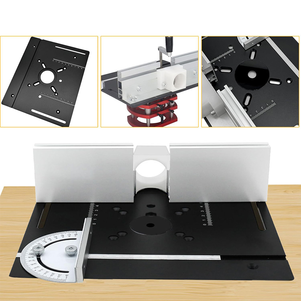 висота підйому до 51 мм і підходить для машин для обрізки та гравірування з діаметром двигуна від 64 до 66 мм. Його можна використовувати з висувною пластиною для різання, яка підходить для створення власного точного деревообробного верстака, проста в установці та використанні. Це може полегшити точне свердління та встановлення будь-якої фрези. Високоякісний алюмінієвий сплав, міцний і зносостійкий, не легко піддається іржі.
