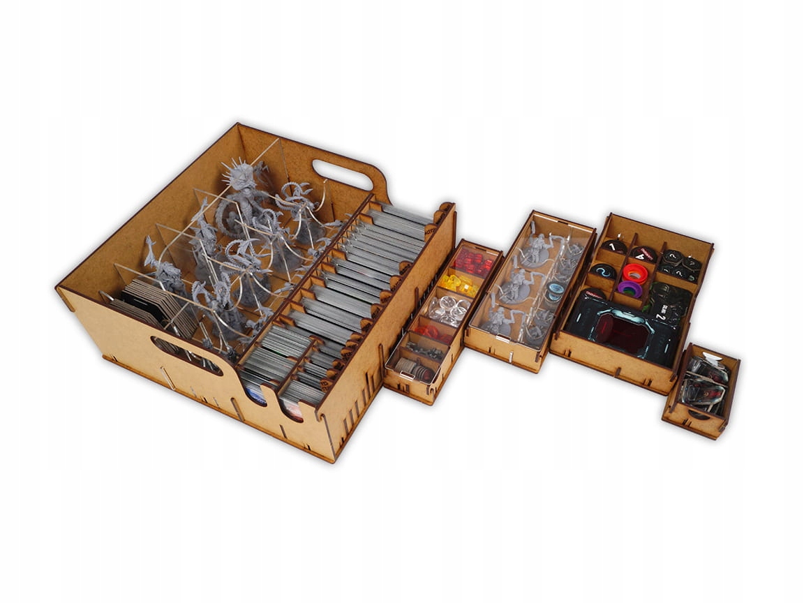 Завдяки вставці ви можете систематизувати всі ігрові елементи (дошки гравців, жетони, карти в рукавах, кубики, маркери гравців тощо) і зберігати їх в одному місці, не боячись втратити контроль над аранжуванням. Гравці отримують легкий доступ до всіх елементів, які не займають стільки місця, як під час гри без вставки.