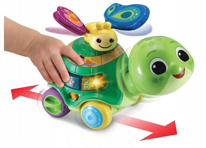 Інтерактивний штовхач для виявлення черепах від VTECH. Зручна ручка підходить для немовлят, а завдяки легкому від’єднанню ви можете швидко змінювати варіанти гри.