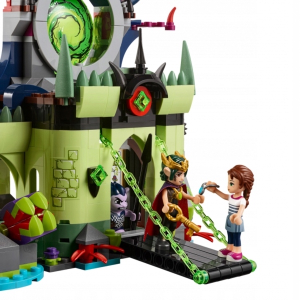 • Набір включає дві -поверхова фортеця з вежею, троном, що обертається, і підвісною кліткою, порталом, що відкривається, підйомним мостом, хижими рослинами-пастками, функціональною катапультою та магічною книгою, що відкривається.