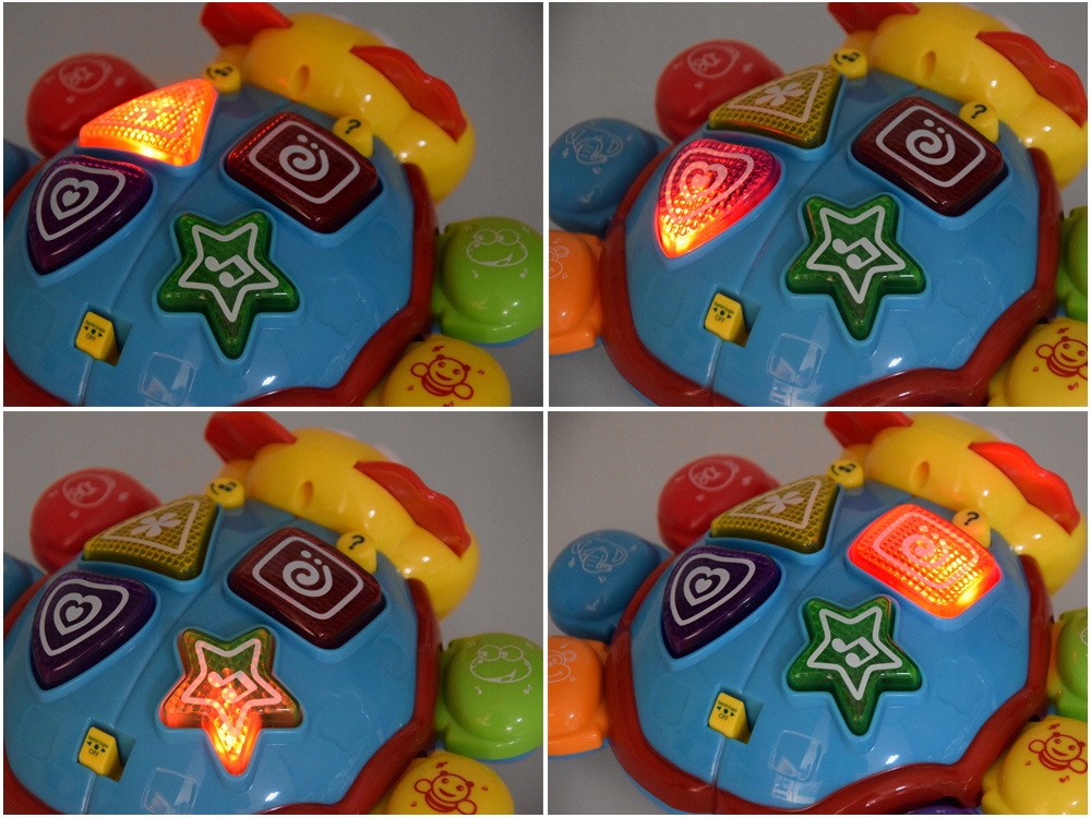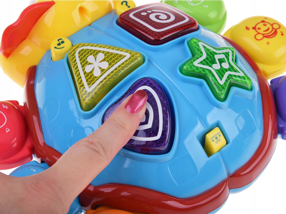 - On the back of the worm we will find a button with a hint, which starts cheerful melodies, which are accompanied by flashing lights