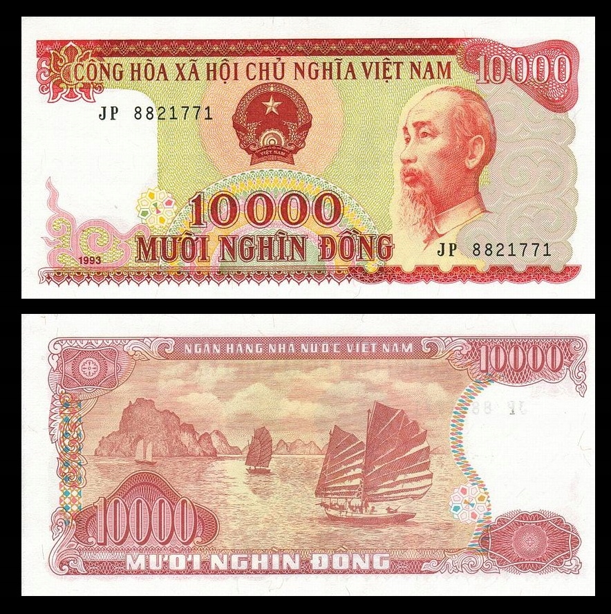 Прекрасна банкнота в 10 000 донгів з В'єтнаму - 1993 рік. (P-115) в абсолютно ідеальному банківському стані I (UNC).