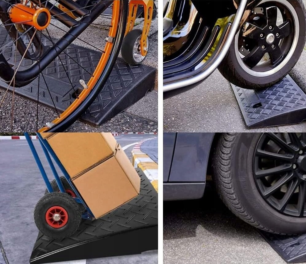 - у домогосподарстві : ідеально підходить для введення велосипедів, конос, конос, валіз або сміттєзвалища для проїжджої частини, до гаража або через поріг. Обмежена мобільність : забезпечує плавне вхід інвалідних візків та електричних скутерів через бордюри та сходи, забезпечуючи кращу доступність та комфорт. 4 4 4 4 Пластри.