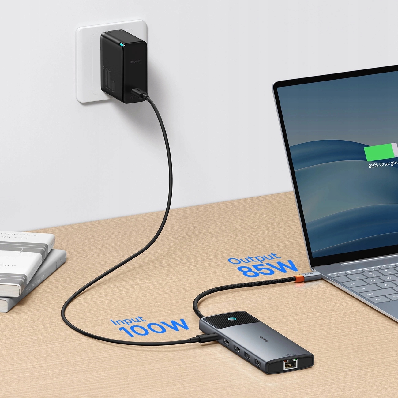 Забудьте про тривалий час завантаження. HUB дозволяє заряджати потужністю до 100 Вт. Тепер ви можете заряджати свої пристрої ще швидше, заощаджуючи дорогоцінний час і завжди знаючи, що вони готові до роботи.