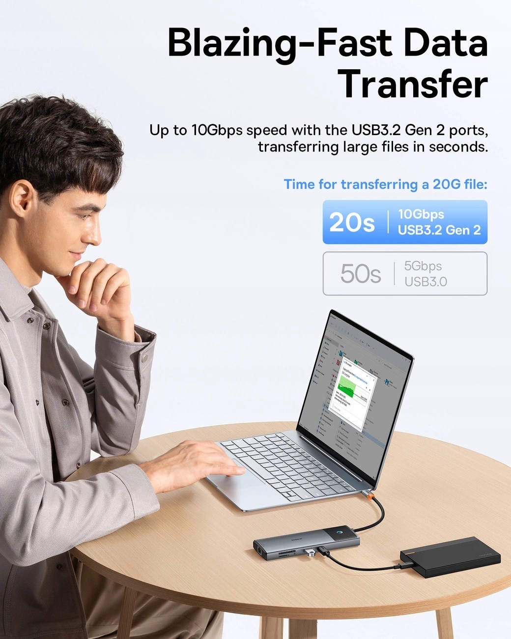 Час — гроші, тому HUB забезпечує надшвидку передачу даних, завдяки якій ви можете передавати великі файли всього за кілька хвилин. Працюєте ви над проектами, переглядаєте медіафайли чи передаєте файли.