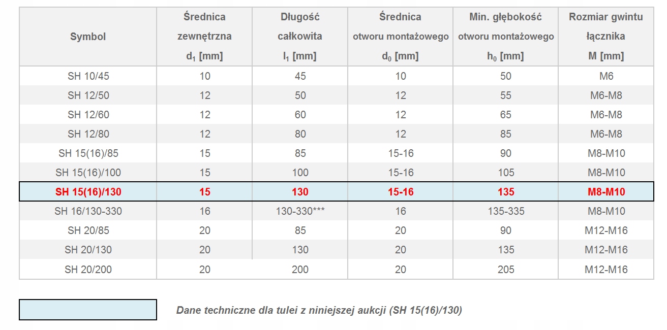 - Код продукту: SH 15/130 (M8-M10)