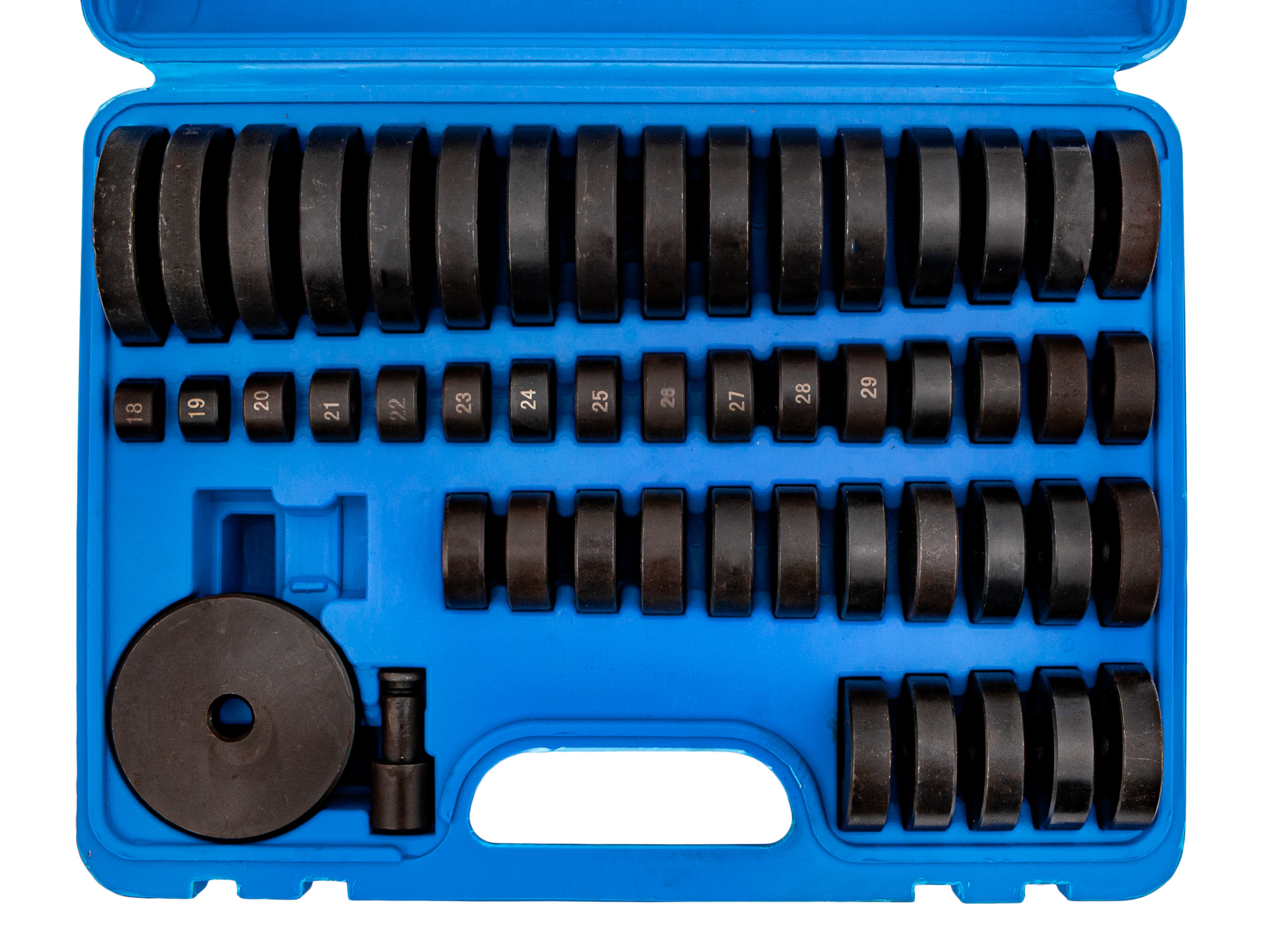 Професійний набір адаптерів від відомої компанії FALON-TECH використовується для монтажу та демонтажу підшипників, метало-гумових втулок і штифтів.