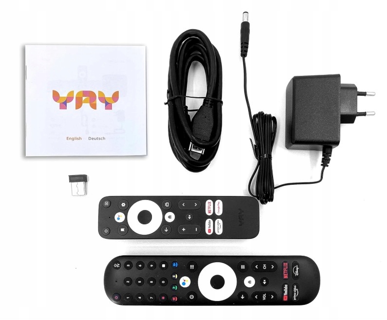 vu+ yay pro 13697 ryder - це сучасний android tv tvering box, ri -and З сертифікація Google та підтримка найпопулярніших потокових служб, таких як netflix 4k , prime Video 4k , disney+ 4k і youtube 4k . Завдяки функції Chromecast ви можете легко надсилати медіа зі свого смартфона або планшета безпосередньо на телевізор. Набір включає Bluetooth пульт дистанційного керування , що дозволяє зручно та інтуїтивно керувати пристроєм. Декодер підтримує Dolby Digital Plus , пропонуючи відмінну якість звуку.