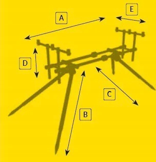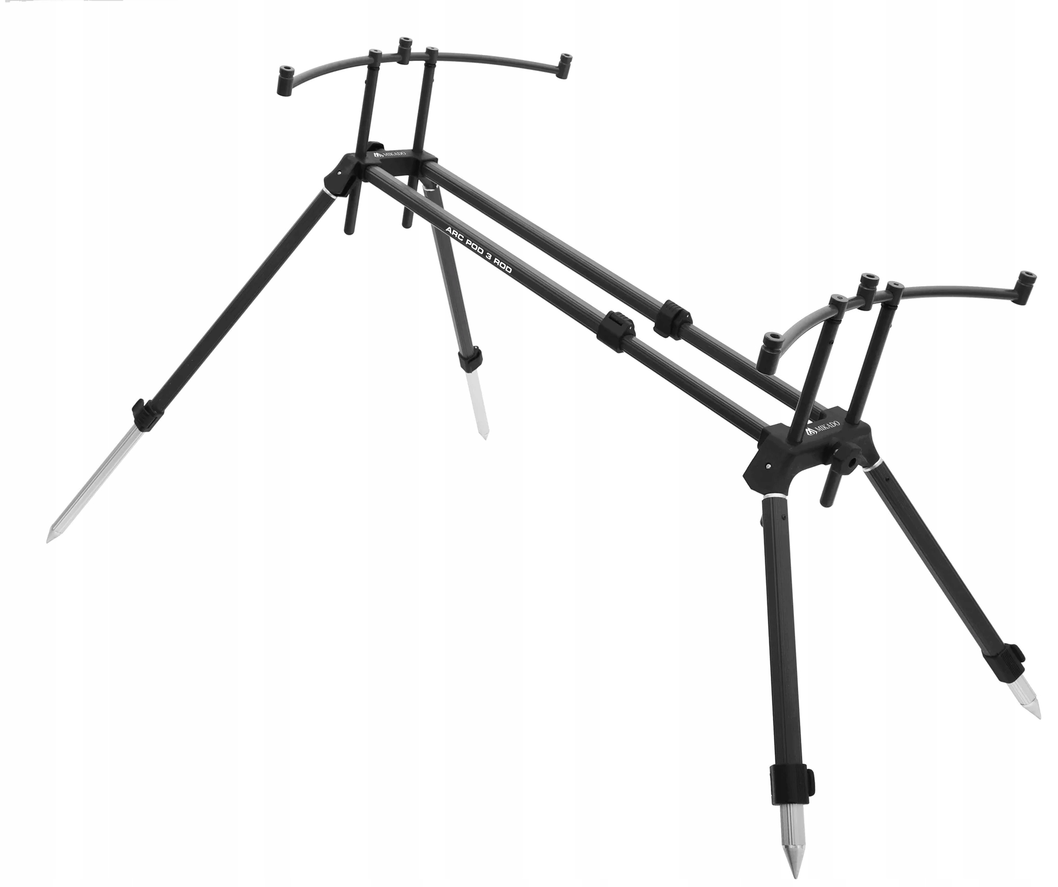 Дуже стійкий вудлище на 3 вудилища, оснащене 4 регульованими ніжками, з’єднаними подвійною рамою. Надзвичайно жорстка конструкція дозволяє ідеально розташувати вудилища на будь-якій поверхні, навіть із високими кінчиками.