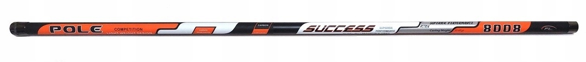 Вудка SUCCESS від відомої компанії FL, виготовлений повністю з карбону. Вудка довжиною 8м. Кількість секцій 6. Вага 430г. Дія 30-60г. Вудка в чохлі. Міцний і легкий. Солідна якість! Не гнеться, як сосиска. На інших аукціонах також є хлисти довжиною 7, 6 та 5 метрів цієї ж моделі. Рекомендую!