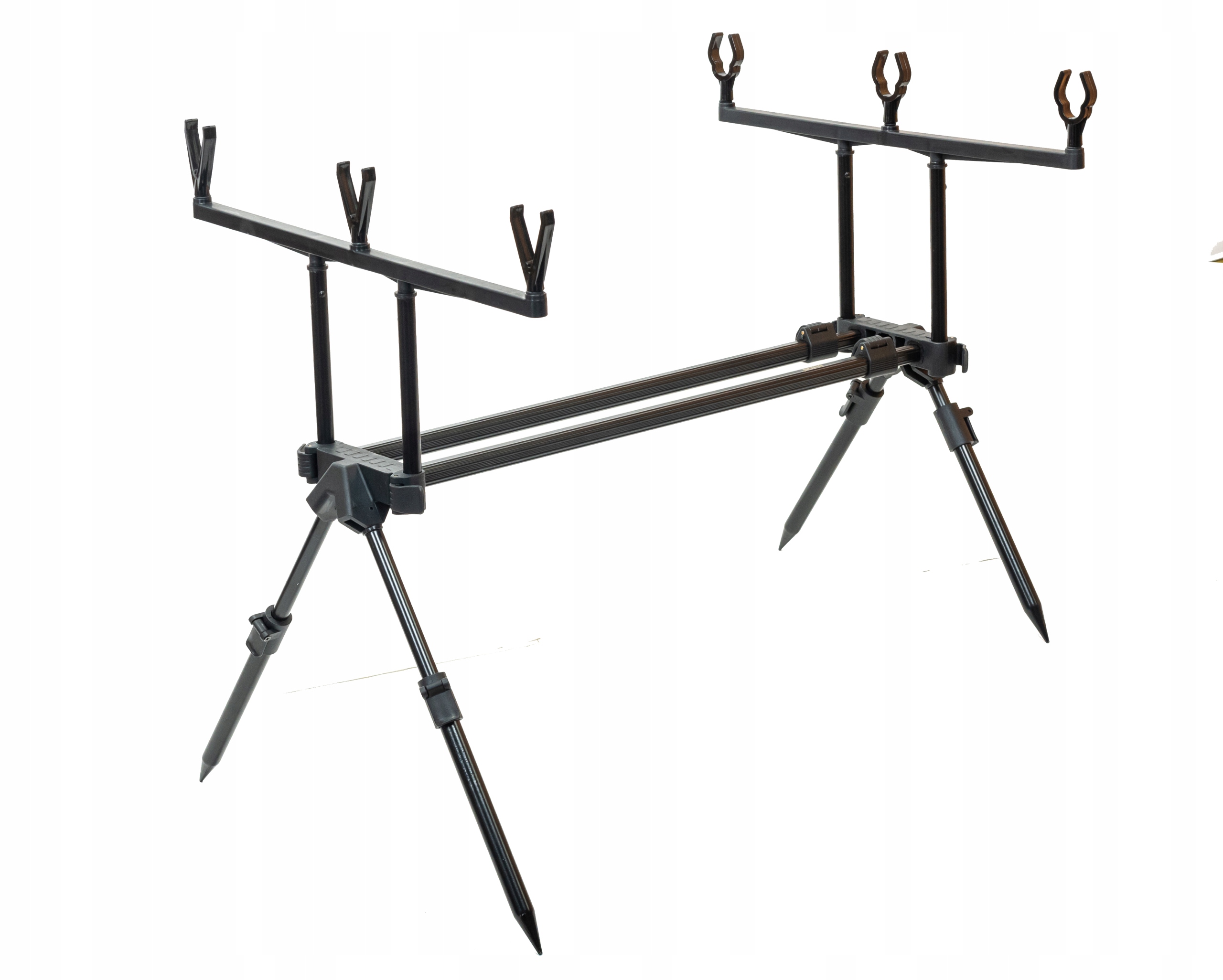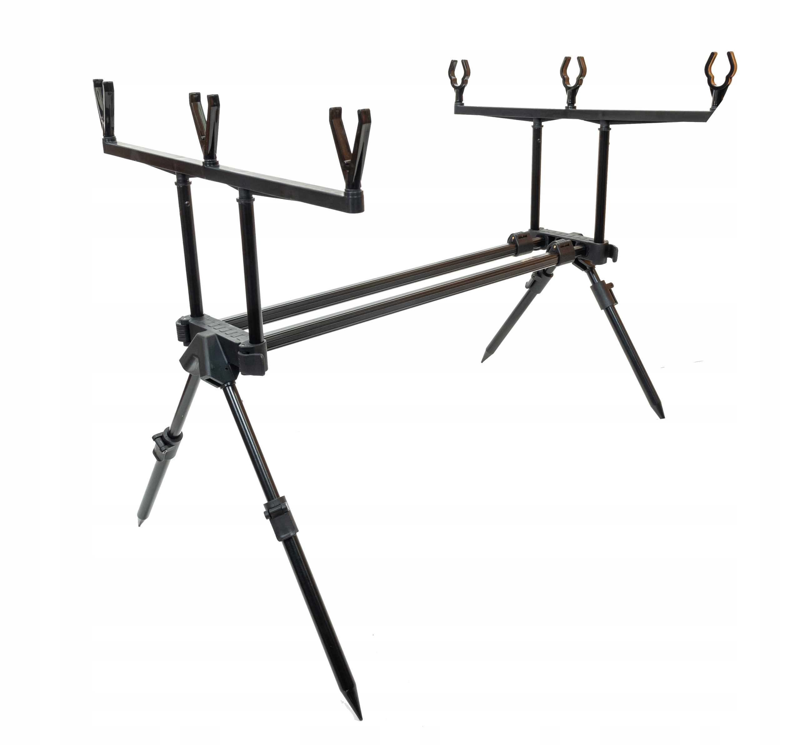 Універсальний родпод для тих, хто шукає стабільний штатив, з можливістю розміщення до 3 вудилищ одночасно. Кут нахилу вудилищ можна регулювати декількома способами, в тому числі регулюючи базбари, довжину ніжок і довжину підставки, що дозволяє адаптуватися до будь-яких умов на рибальському угідді.