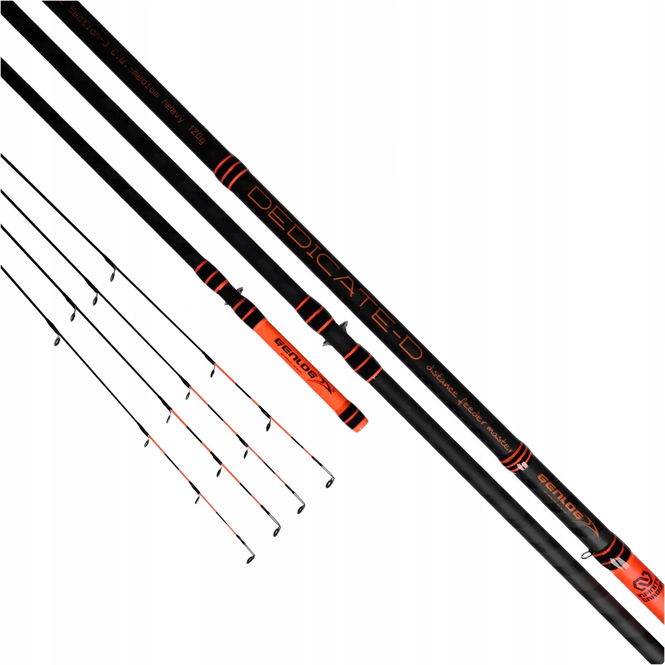 Вудилище GENLOG Dedicate-D Distance Feeder Master 3,60 м вагою 120 г оснащено 4 наконечниками: 1 унція, 1,5 унція, 2,0 унції та 2,5 унції.