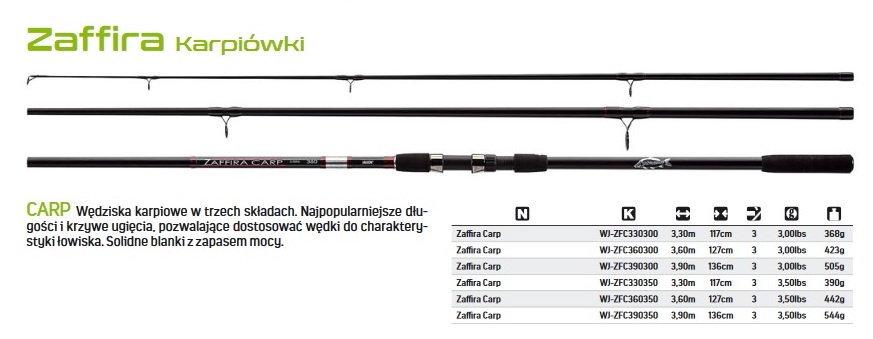 Сучасний зовнішній вигляд вудилищ серії ZAFFIRA.Величезною перевагою є дуже високий рівень обробки.Сільна конструкція бланків використовуючи багатошарове розташування скловолокна та епоксидних смол.