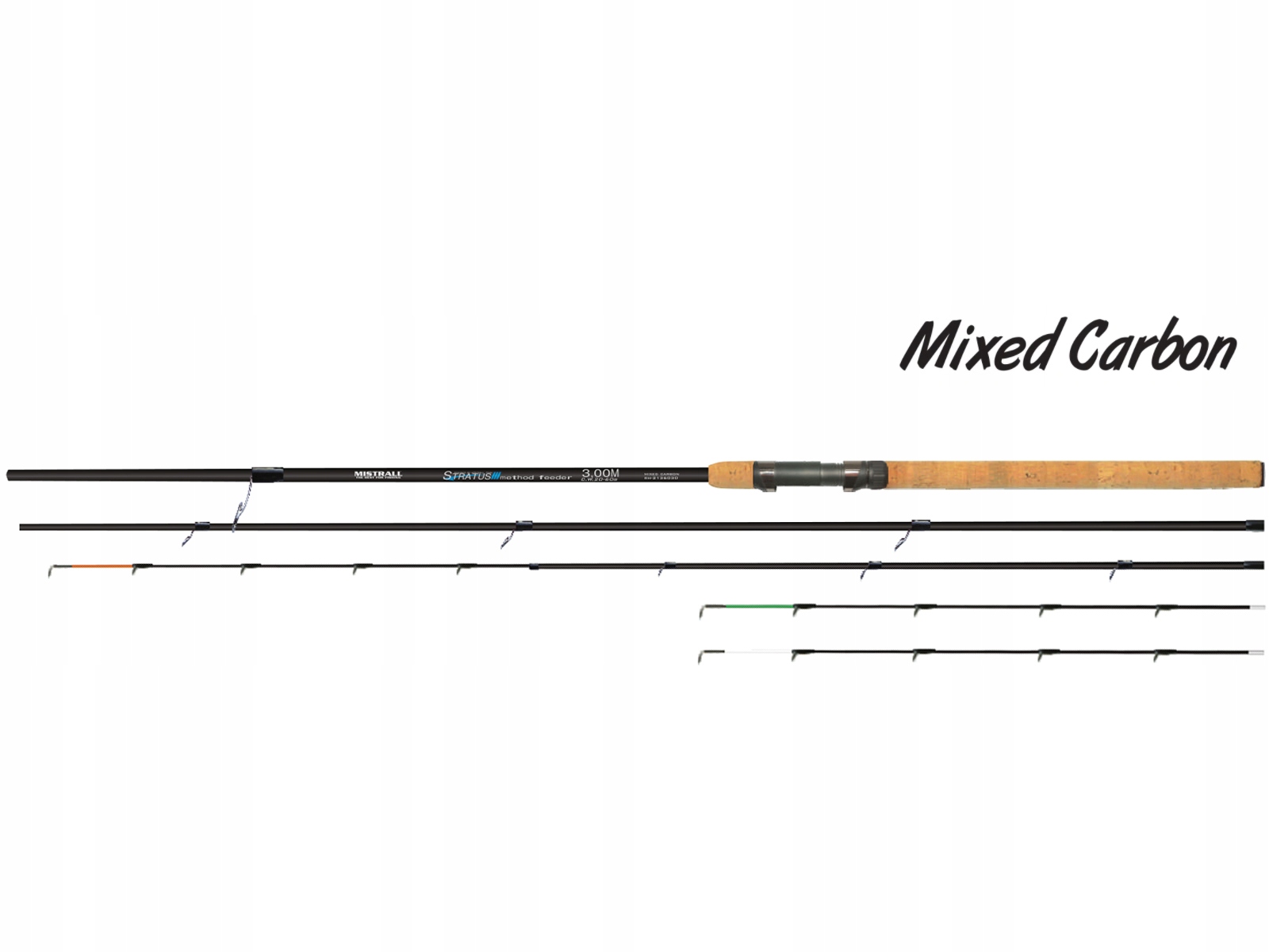Серія грунтувальних вудилищ Mistrall Stratus Method Feeder Medium Black доступна в наступних параметрах - 3м / 20-60г; 3,3м / 20-60г та 3,6м / 20-60г.
